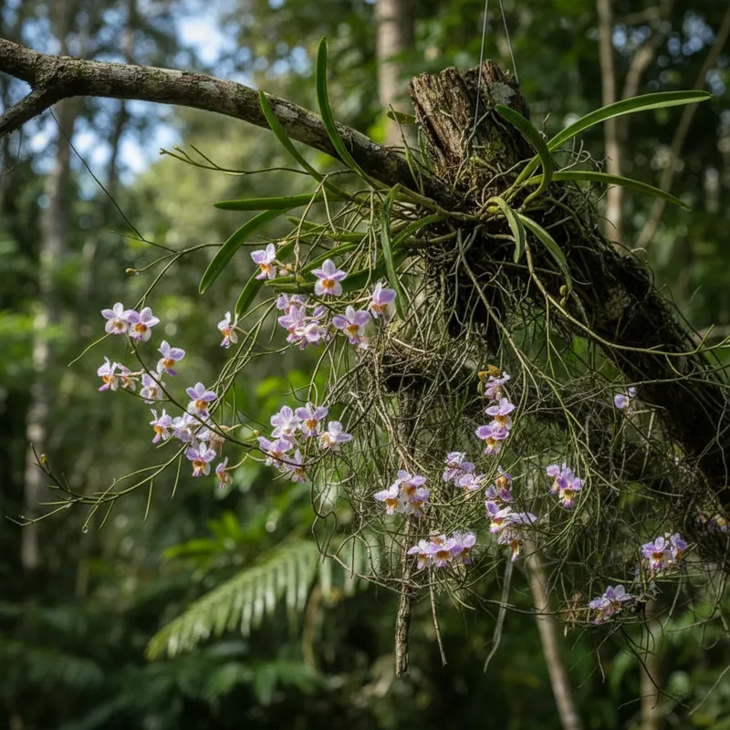 Solo: Embora muitas vezes cultivada sem substrato, se a Vanda Teres for plantada em vasos, o substrato deve ser extremamente bem drenado. Uma mistura de casca de pinus grossa e carvão vegetal é ideal para fornecer a aeração e drenagem necessárias para as raízes. Trocar o substrato a cada 2-3 anos ajuda a manter suas propriedades e evita a compactação, promovendo um ambiente saudável para a planta.